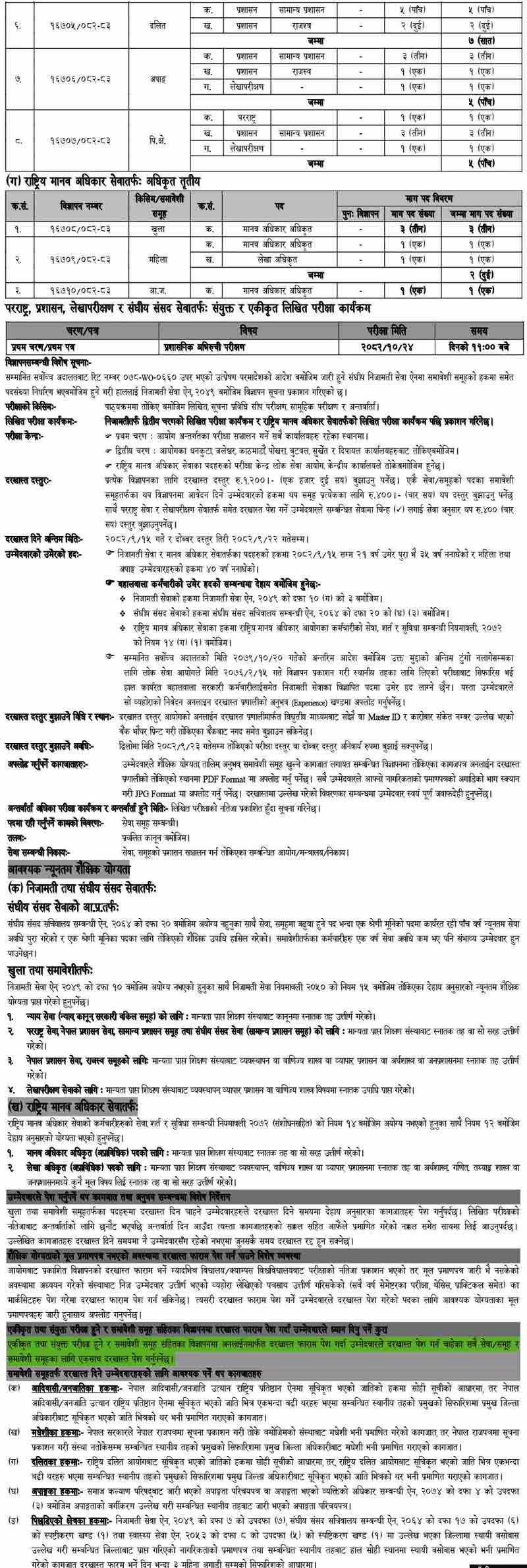 Service: Pararastra, Prasasan, Rajashwo Revenue, Nyaye Judicial, Kanun Law, Accountant Lekha, Human Rights